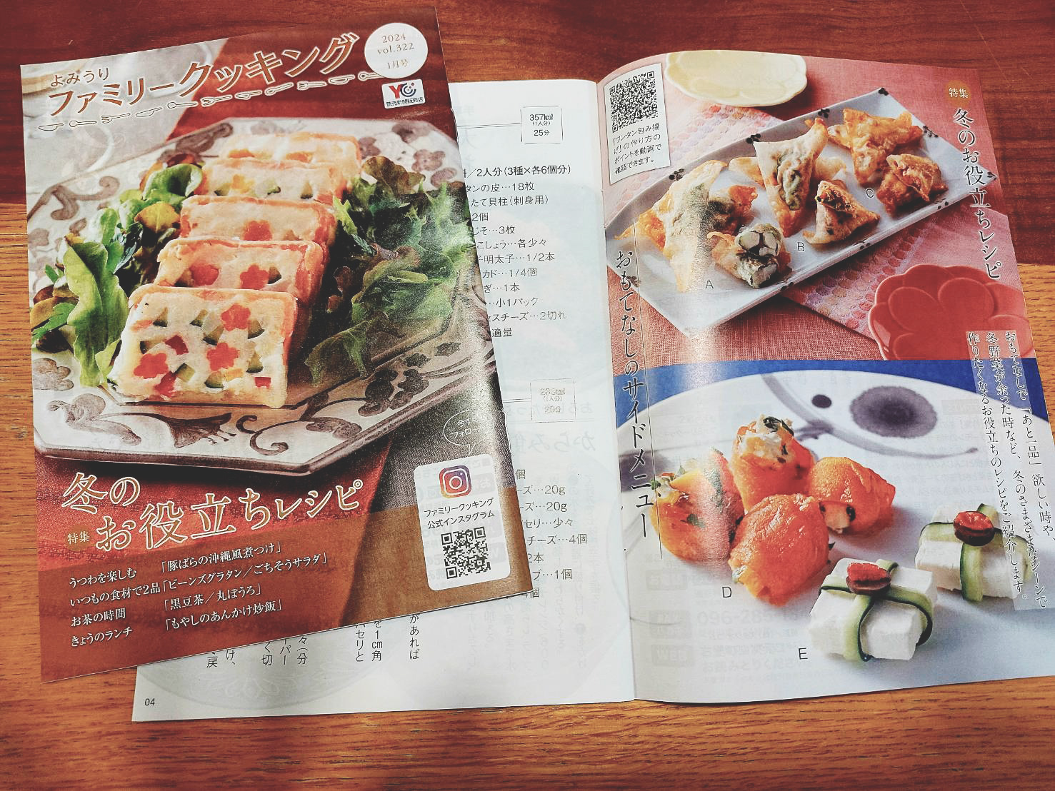 投稿日: 2023年12月23日2023年12月23日 投稿者: kayoba-gohan【レシピ掲載】よみうりファミリークッキング vol.322 1月号 よみうりファミリークッキング vol.322(2024年1月号)にレシピが掲載されています。 今月の特集は『冬のお役立ちレシピ』を紹介しています。