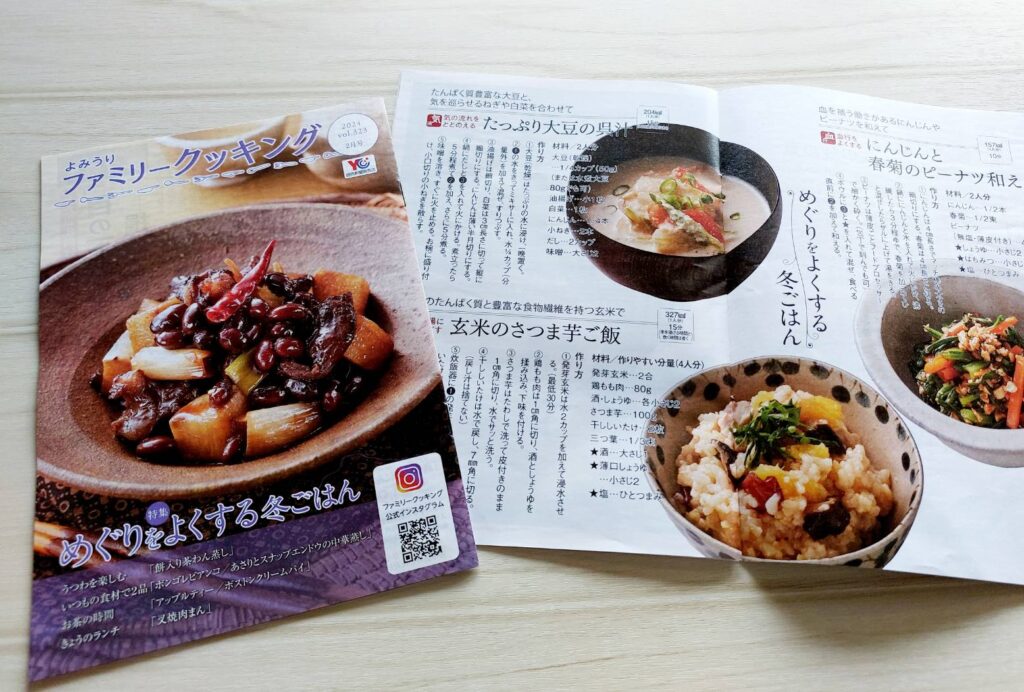 投稿日: 2024年2月6日2024年2月6日 投稿者: kayoba-gohan【レシピ掲載】よみうりファミリークッキング vol.323 2月号 よみうりファミリークッキング vol.323(2024年2月号)にレシピが掲載されています。 今月の特集は『めぐりをよくする冬ごはん』を紹介しています。