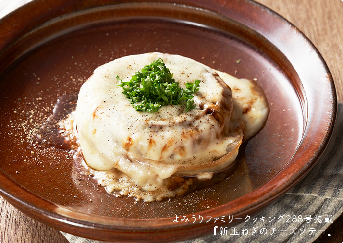 ①新玉ねぎは上下を切り落とし、真ん中で水平に、半分に切る。