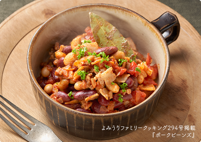 ③②にトマト水煮缶を缶汁ごと加え、水をきった豆類と★も加える。煮立ったら中火にし、20分程煮込む。味を見て足りなければ塩・こしょう各少々(分量外)で調え、刻んだパセリを散らす。